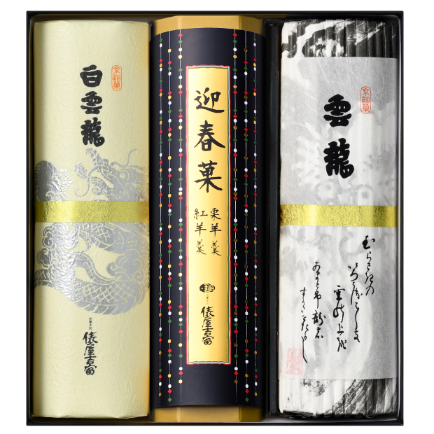 代表銘菓の雲龍は一本一本全て手で巻いており、生菓子や干菓子も昔から変わらず手作りを守っております。そんな京菓子の材料も職人により選び抜かれたものを仕様しております。